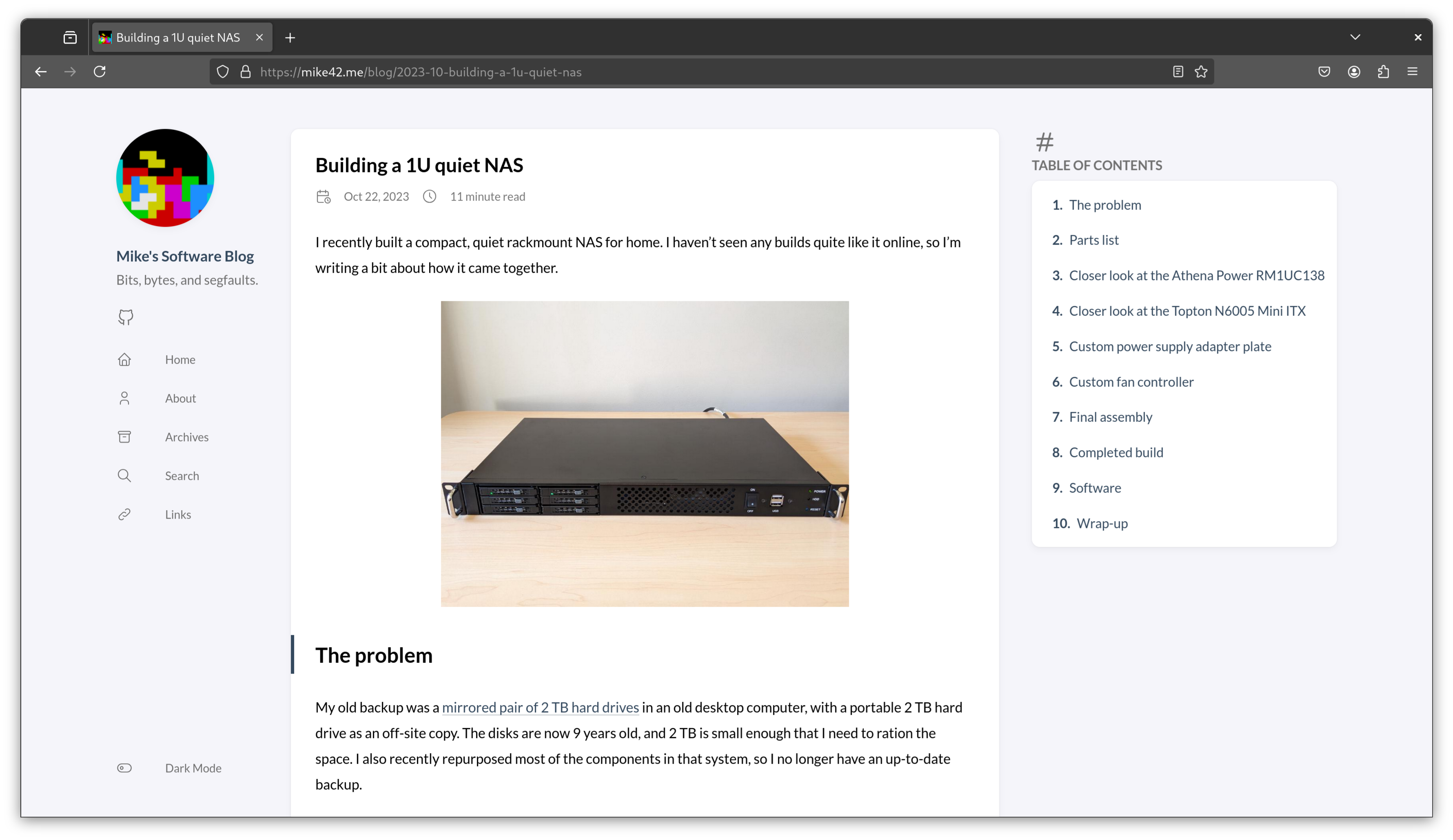I still think it was the right move for this site, and Hugo’s rough edges are worth it for the benefit of having a self-contained tool to build the site. Comparable static site generators seem to all require a working Node, Ruby or Python setup, plus their associated package managers, which is too many moving parts for publishing the occasional blog post.