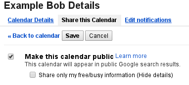 So, if your calendar isn’t too sensitive, click “Share” and make the calendar public:
