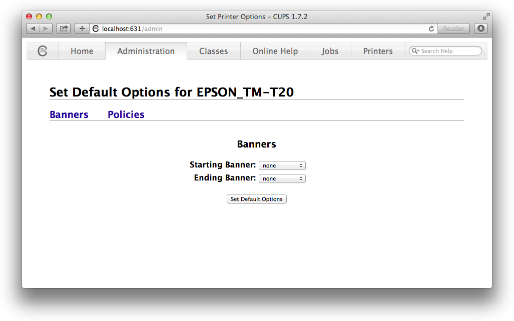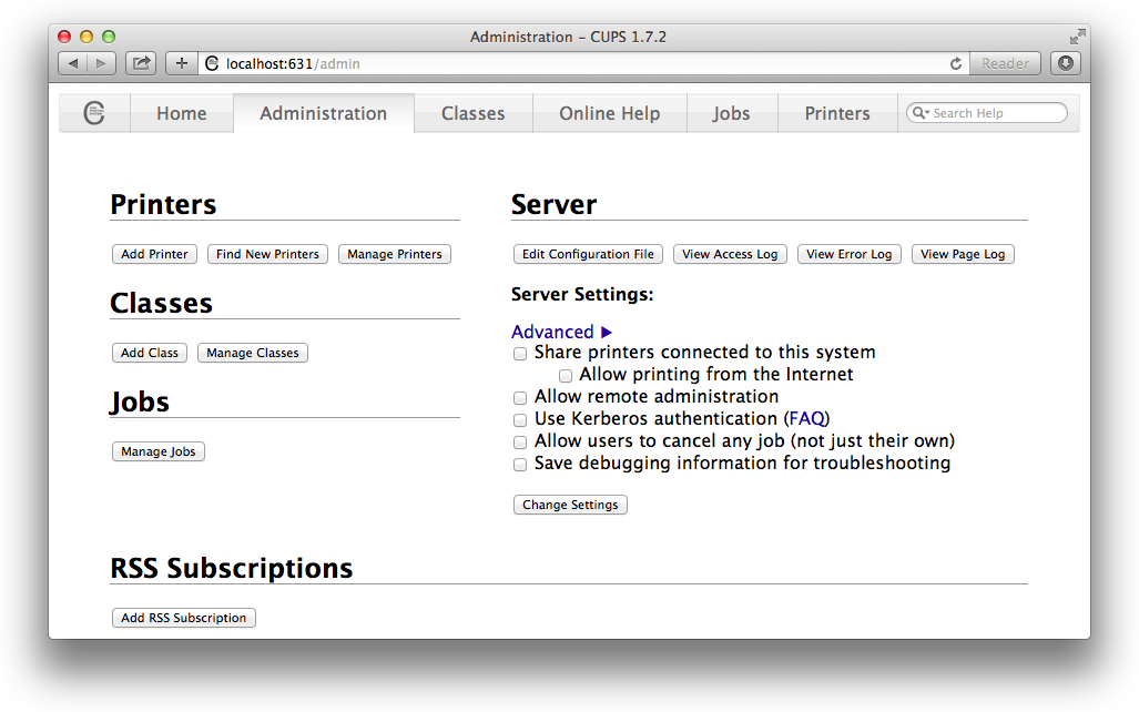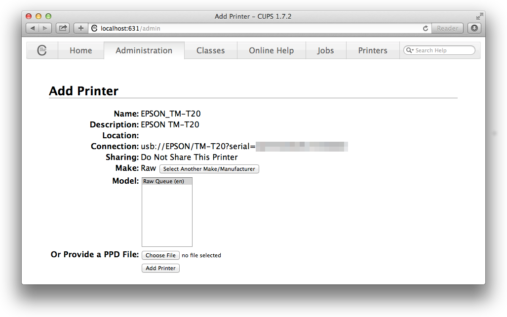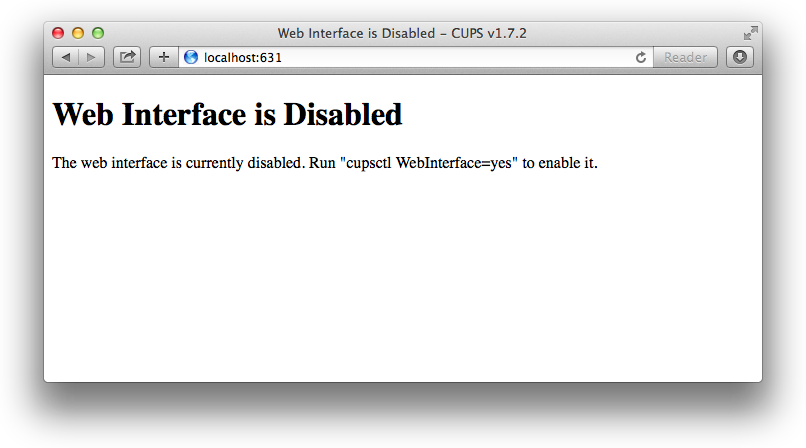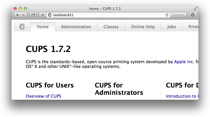 In this case, we need to set up the printer via the CUPS web interface. This is accessed via a web browser at this address: