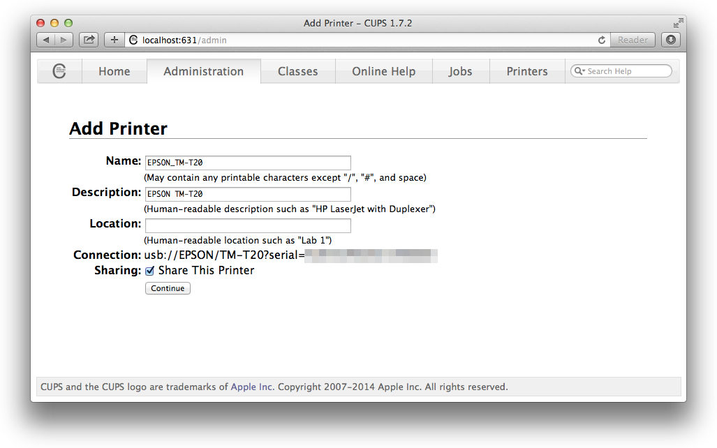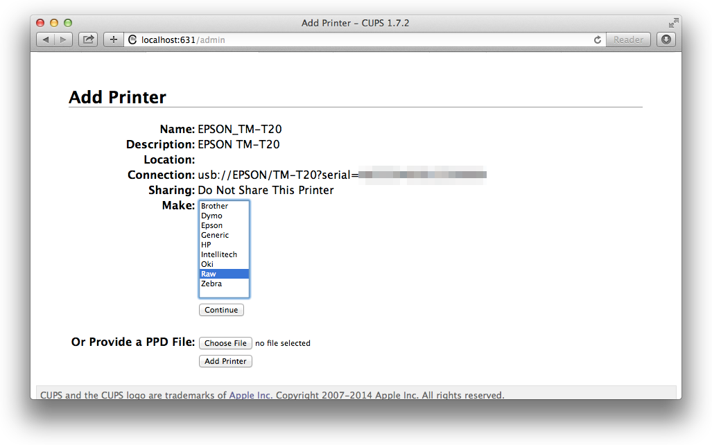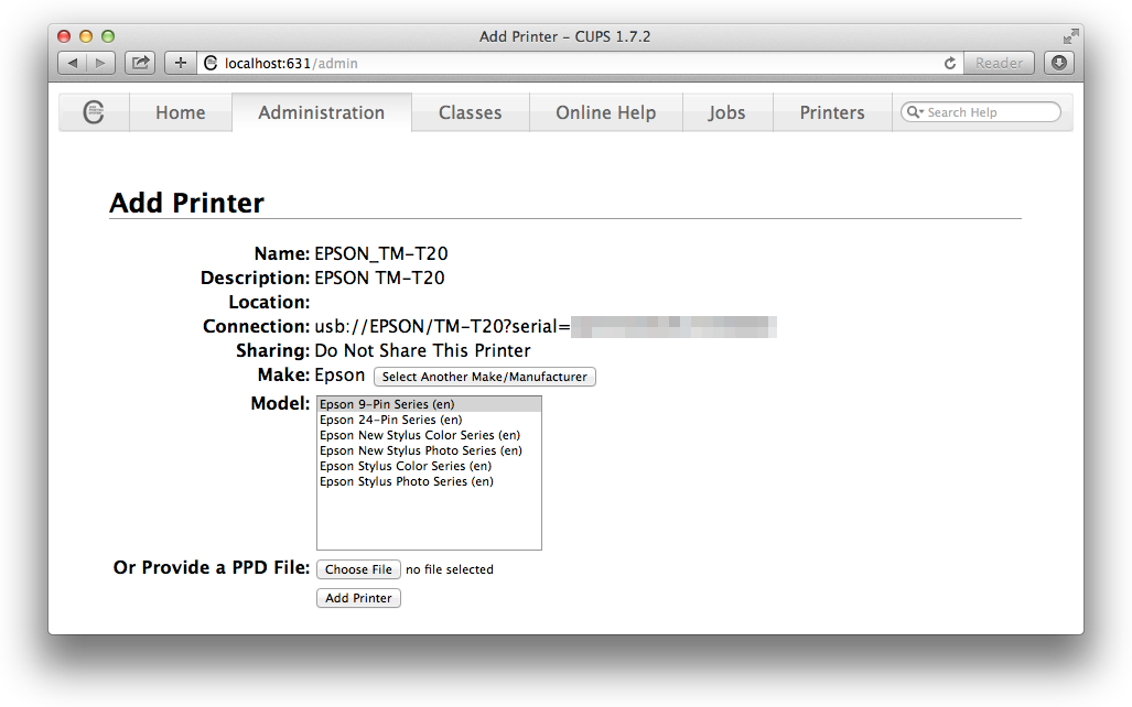 This post will show you how to set up a USB receipt printer on Max OS X. These steps were written on Yosemite, but should work on 10.6 onwards (ie, also Snow Leopard through to El Capitan).