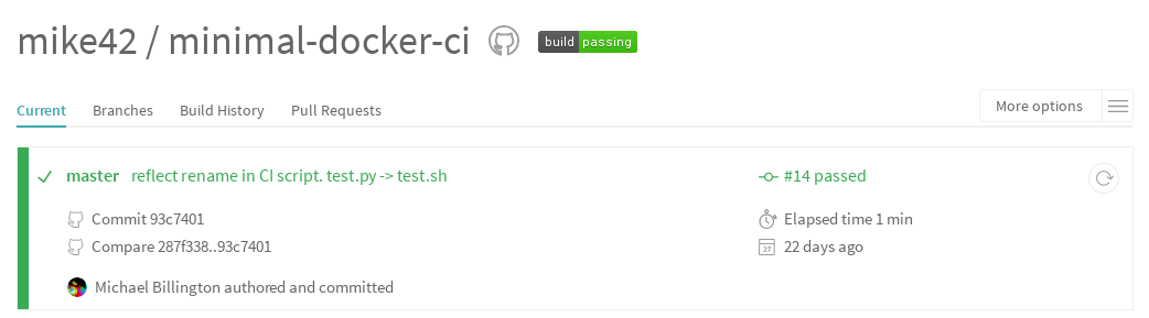 All of these scripts in a working CI example are available on GitHub: mike42/minimal-docker-ci