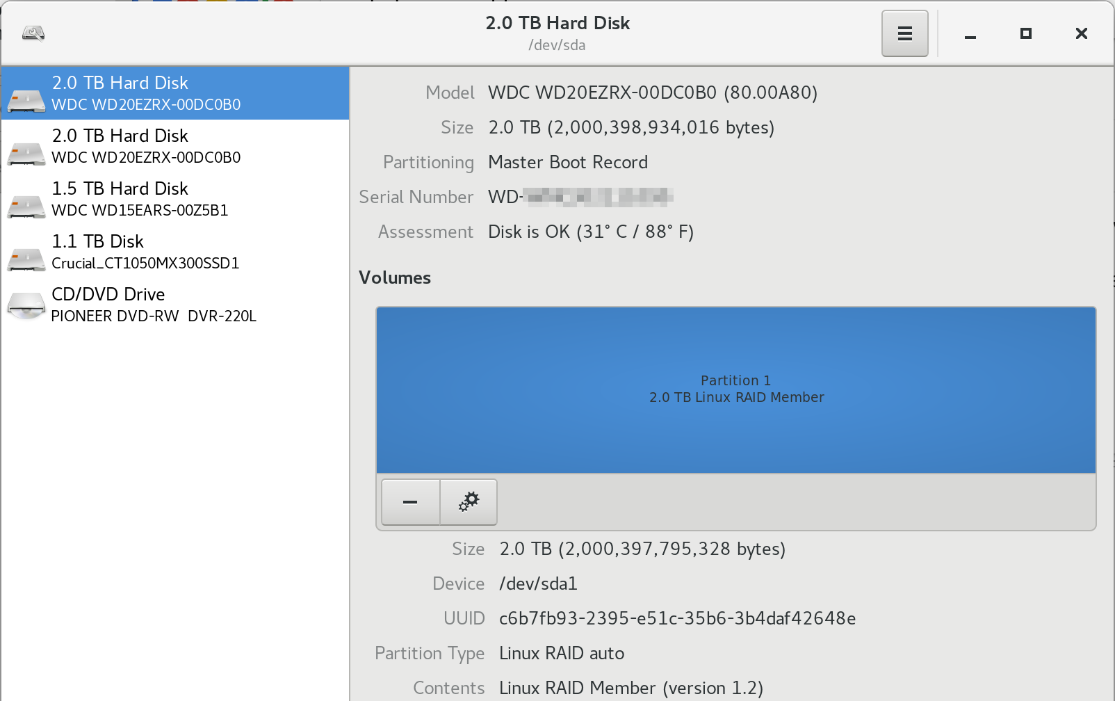 They appear as “Linux Software RAID Member” in the disk utility.