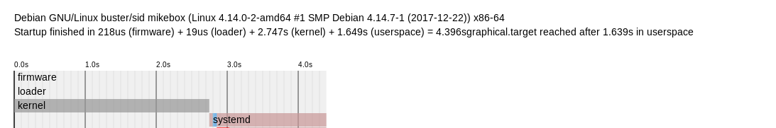 I then ran systemd-analyze again, and found that the boot was still taking 4.4 seconds, so, more analysis was in order: