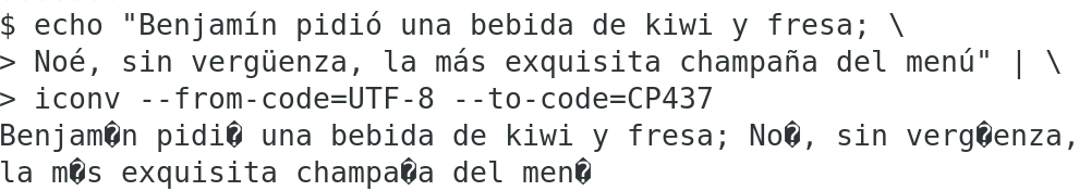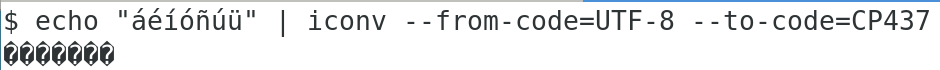 echo "áéíóñúü" | iconv --from-code=UTF-8 --to-code=CP437