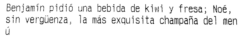 my_printer.text("Benjamín pidió una bebida de kiwi y fresa; Noé, sin vergüenza, la más exquisita champaña del menú\n")