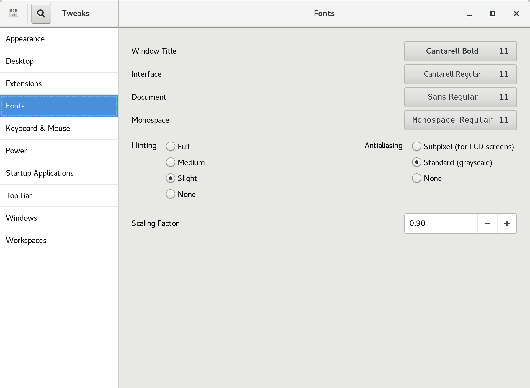 - Font scaling 0.90 to make text slightly smaller