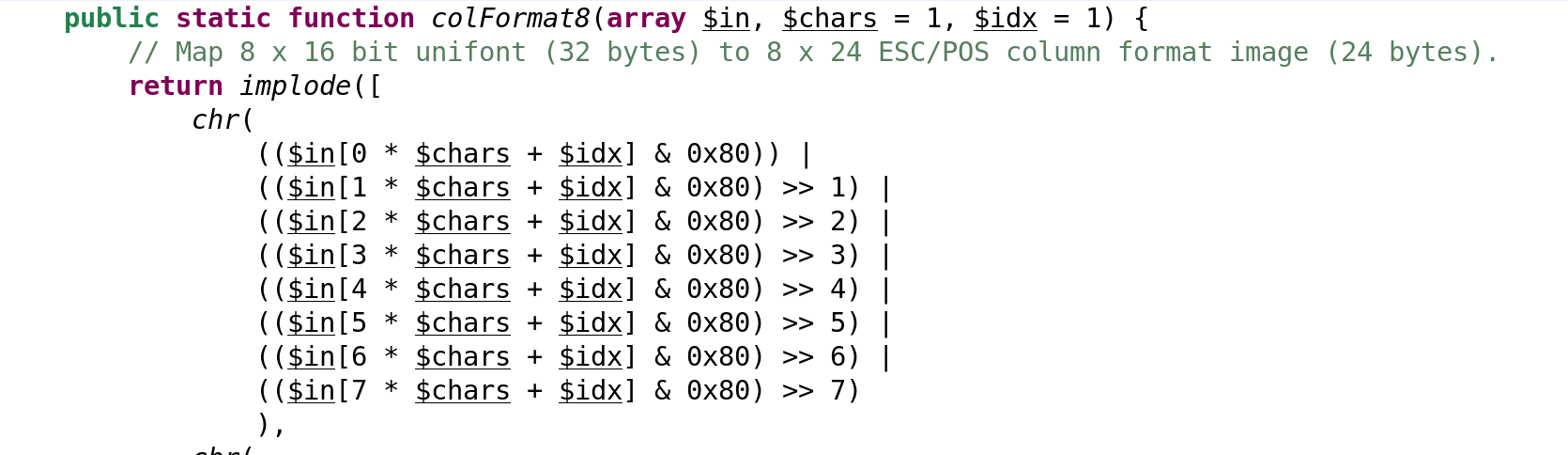 The full script is available in the mike42/escpos-snippets repo on GitHub, where I store prototypes of new functionality that is not yet ready for prime-time.