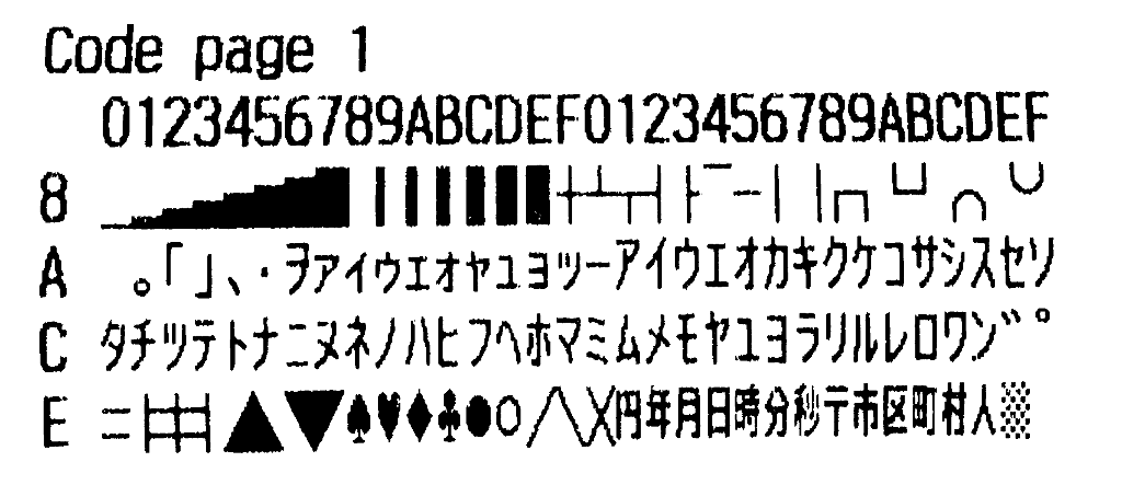 A printer’s documentation vaguely labeled this encoding as “[1] Katakana”. By printing it out, I can see that if I map single-byte half-width Katakana from Code Page 932, it will appear correctly in this code page. That’s type of information you need when you’re asked about it on an issue tracker!