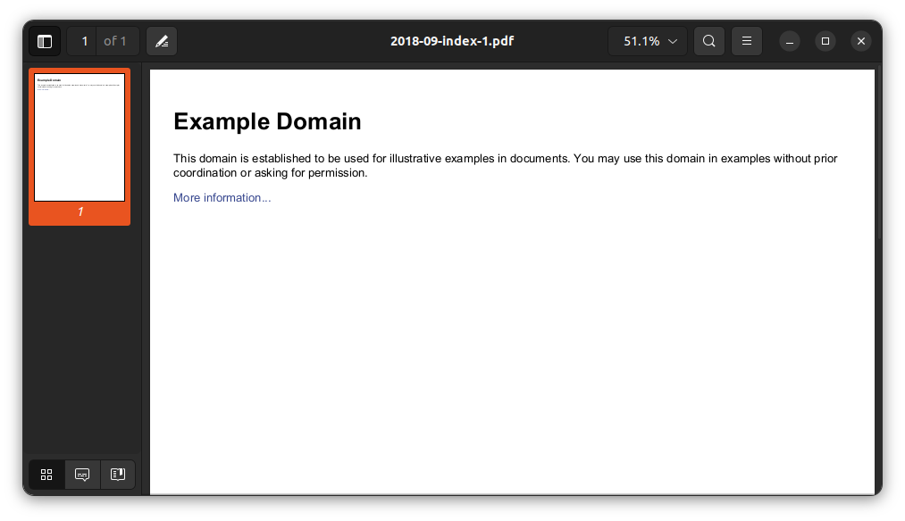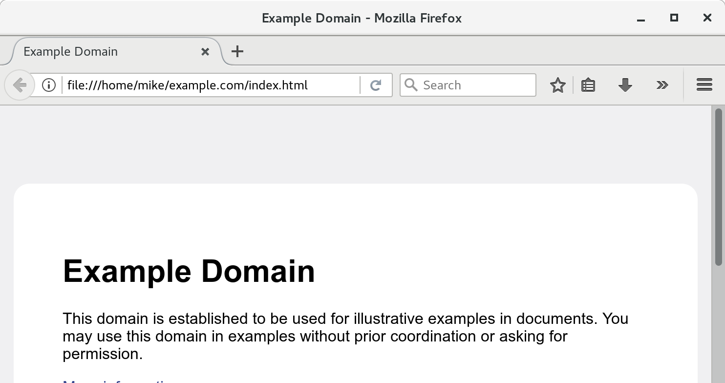 The example.com domain only has an index page, so after running the script against it, it downloads this set of files: