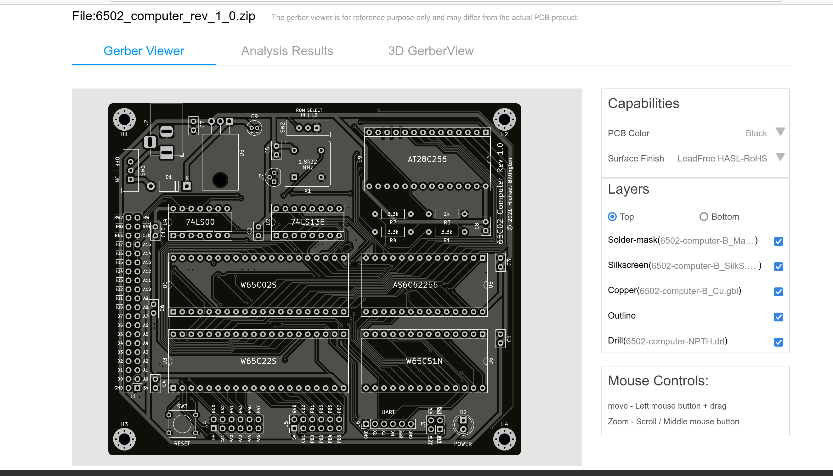 I am glad that an online gerber viewer was available, because it allowed me to spot an error which I had not noticed in KiCad, where I had two pins labelled PA1.