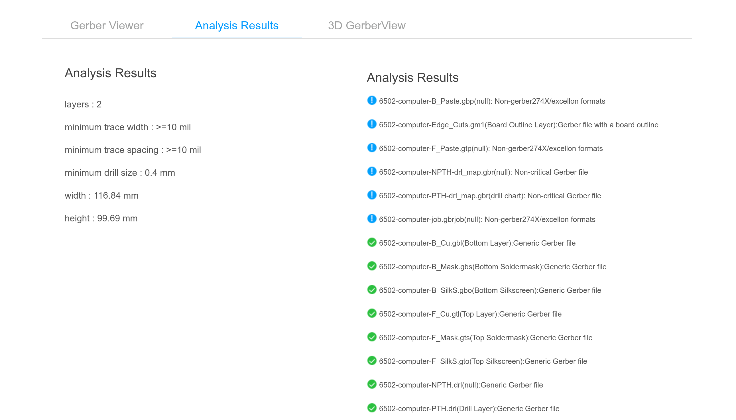 The gerber viewer also has a tab which shows checks against their manufacturing rules.
