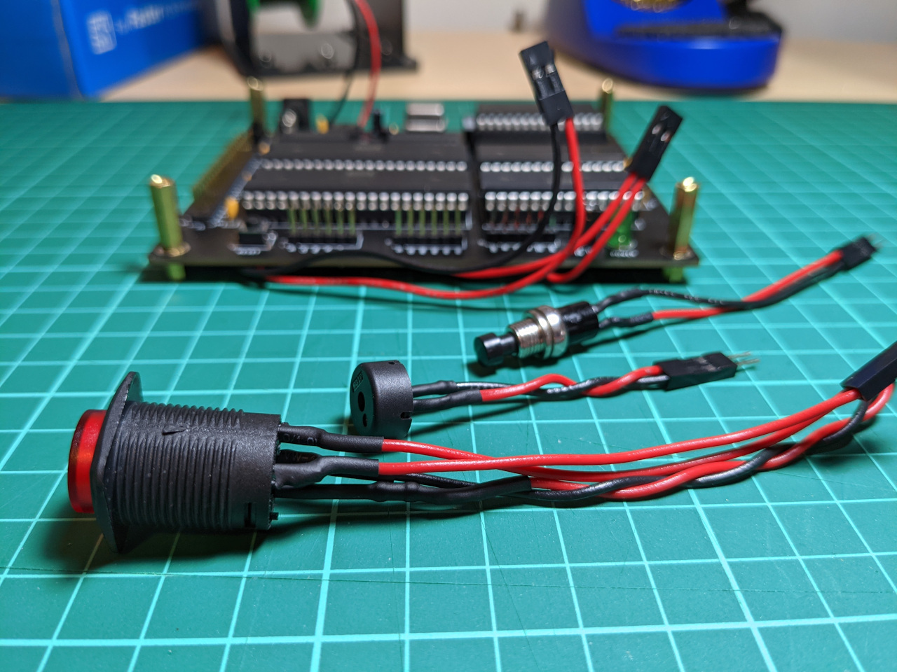 I attached corresponding connectors on the buttons and speaker. The power button also has an in-built LED, and there are plenty of places to power this from the board’s expansion headers. I added a 2-pin female Du Pont connector, plus a resistor, neatly hidden by heat-shrink.