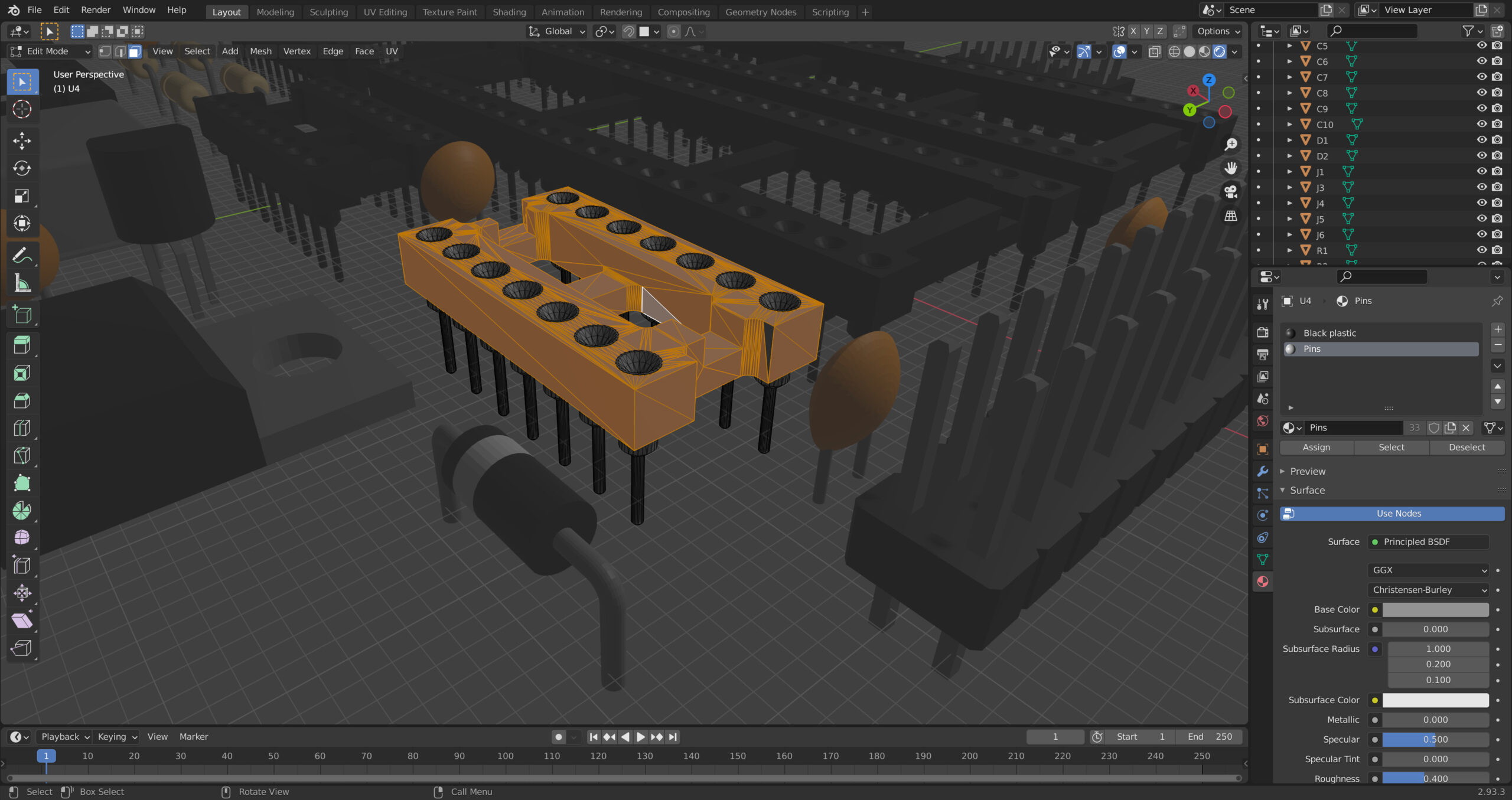 I also UV unwrapped each resistor, in order to paint on the correct colour codes. This was perhaps the most egregious waste of time in this whole thing.