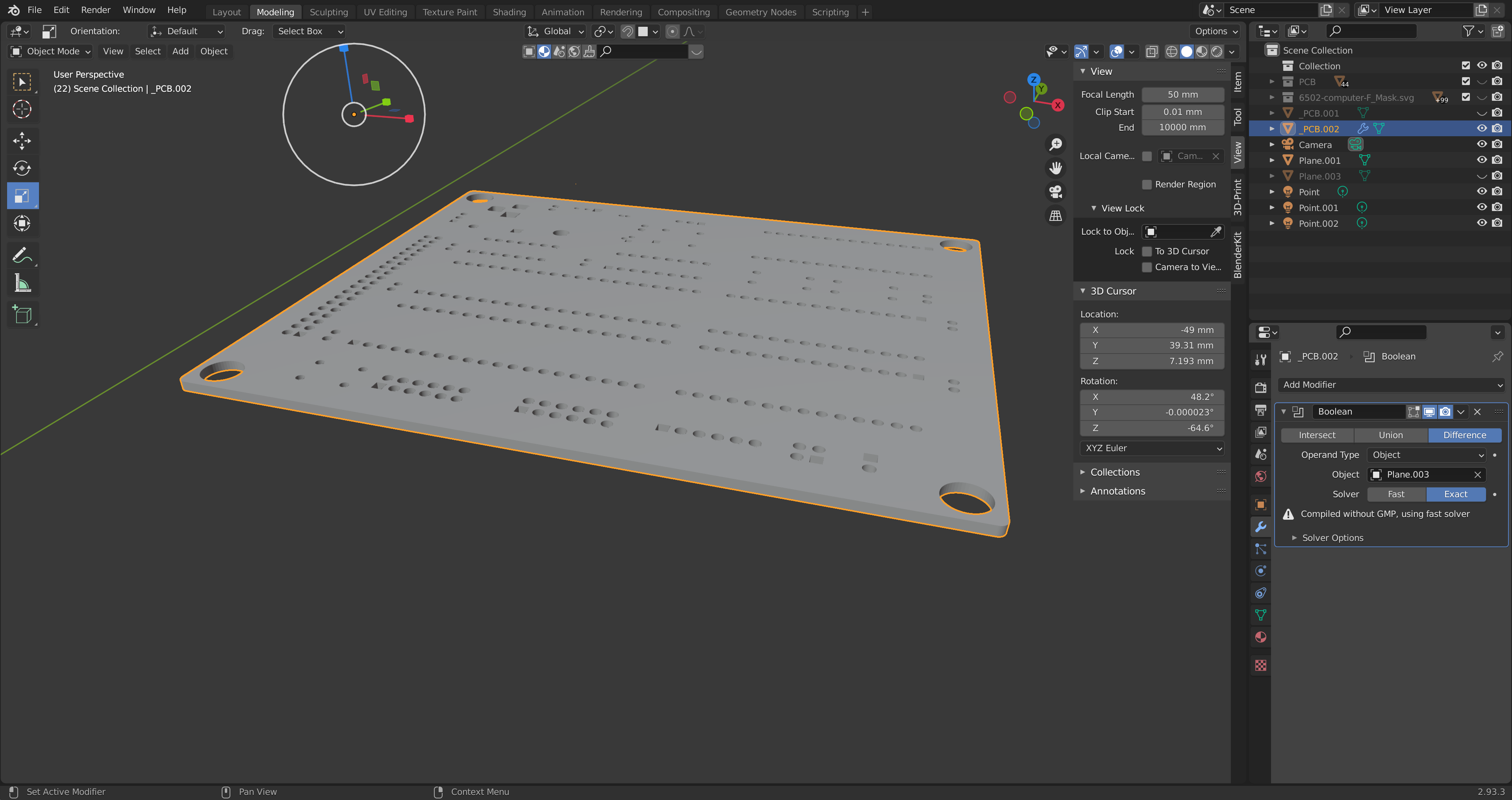 The version of Blender used here is 2.93, and the files were exported from KiCad 5.1.10.
