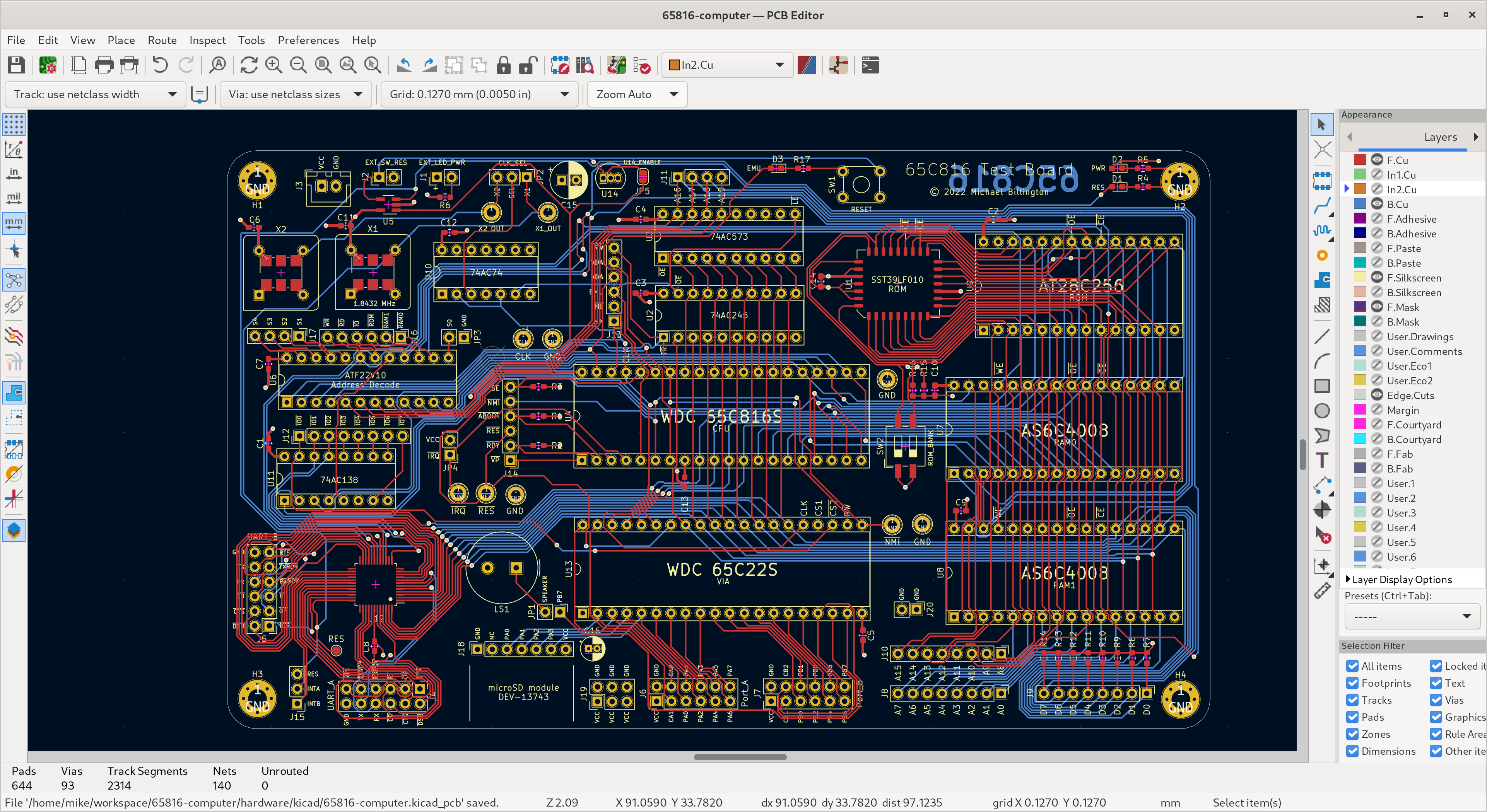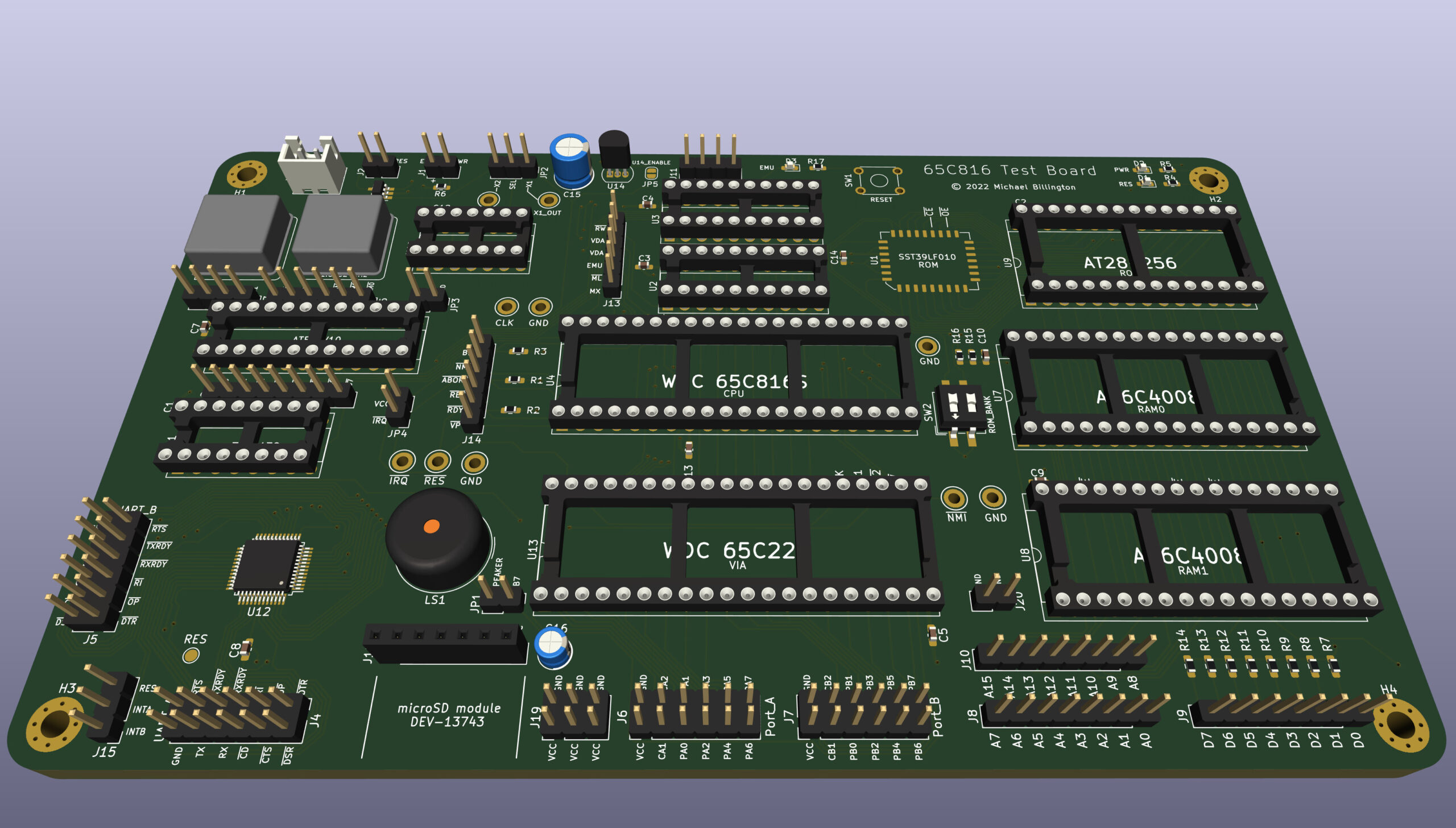 In the last few months, I’ve been learning about the 65C816 processor, and trying to build a working computer which uses it. My latest breadboard-based prototype was not reliable, and I decided to convert it to a PCB to hopefully eliminate the problem, or to at least identify it.