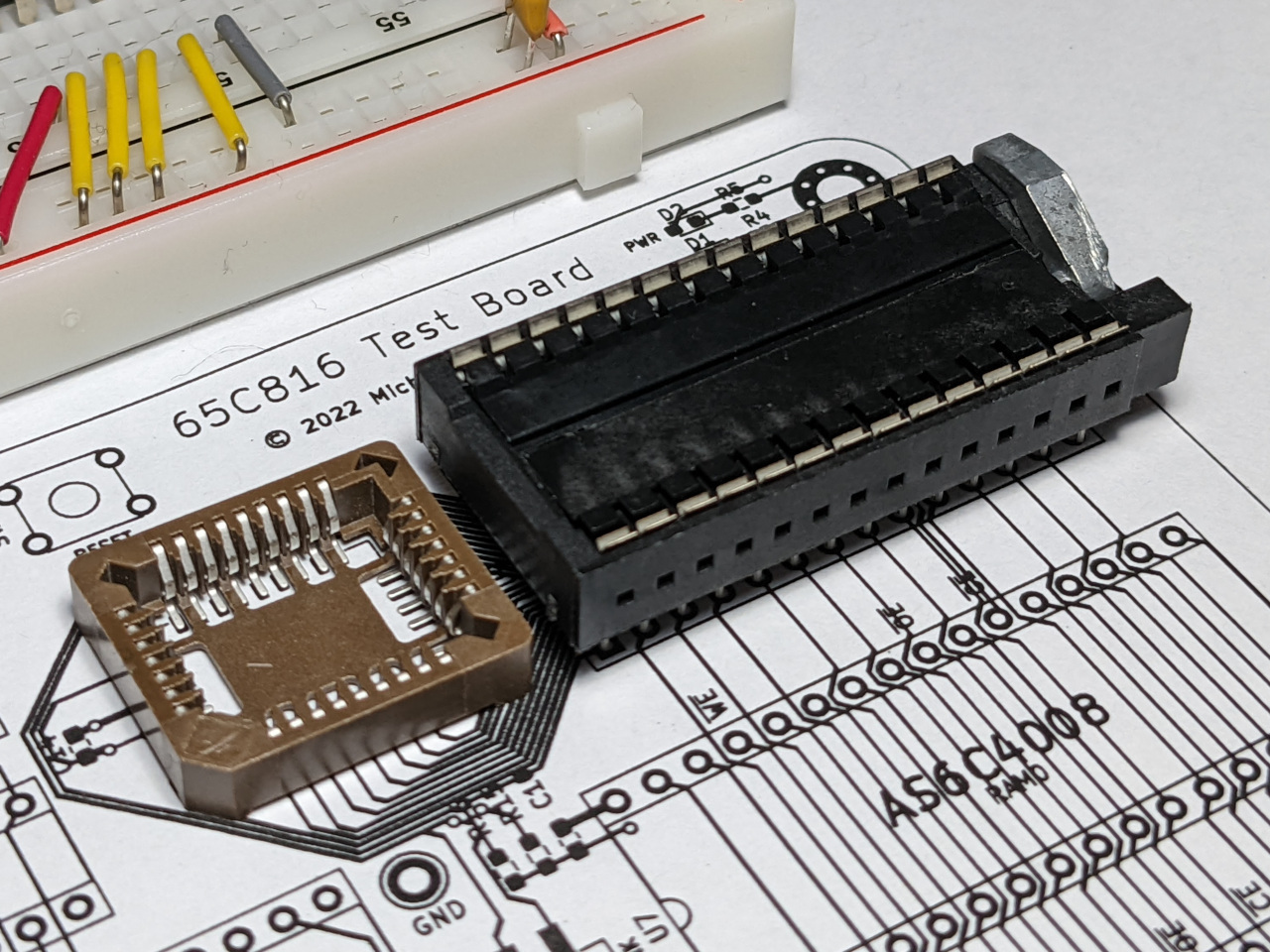 For that previous project, I found that machined-pin sockets are not very tolerant of used chips with bent legs, so I’ve used cheaper stamped pin sockets for this test board. I’ve also left spacing at the ends of each socketed IC, so that they can be pulled out more easily.