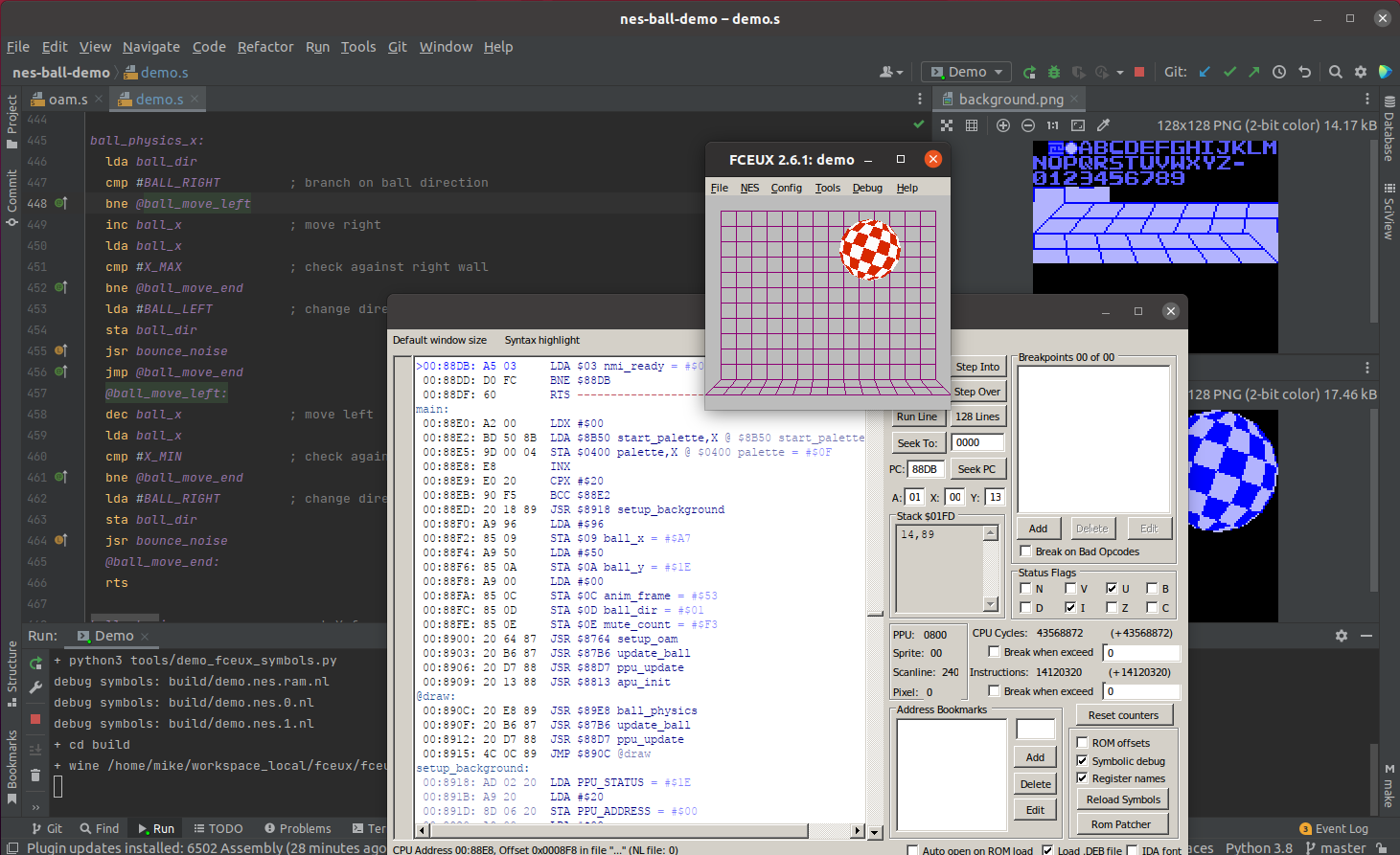 The debug features were previously only available on Windows builds of fceux, so when I made this demo, I was running the emulator via WINE. This has been added to the Linux builds as of v2.5.0, so I’ll most likely switch to that for my next project.