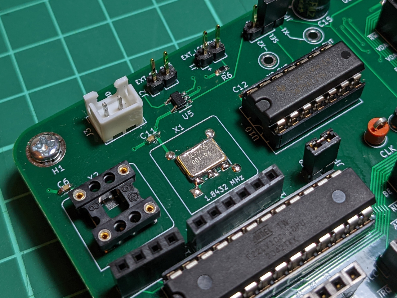 I needed a 1.8432 MHz oscillator for the UART. The 3.3 V surface-mount part I substituted in had a different footprint, which I had prepared for.