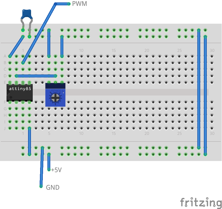 * Gnd ---| 4 GND PB0 5 |-- (D 0) - PWM --> Disabled