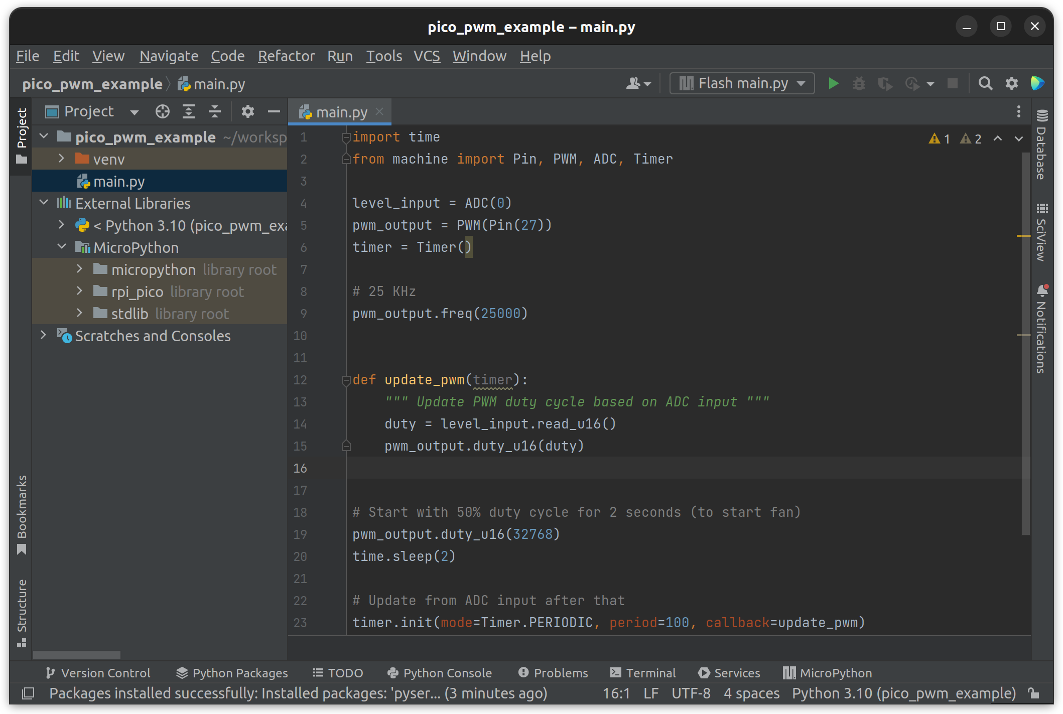For a development environment, I installed the MicroPython plugin for PyCharm, since I use JetBrains IDE’s already for programming. Most guides for beginners suggest using Thonny.