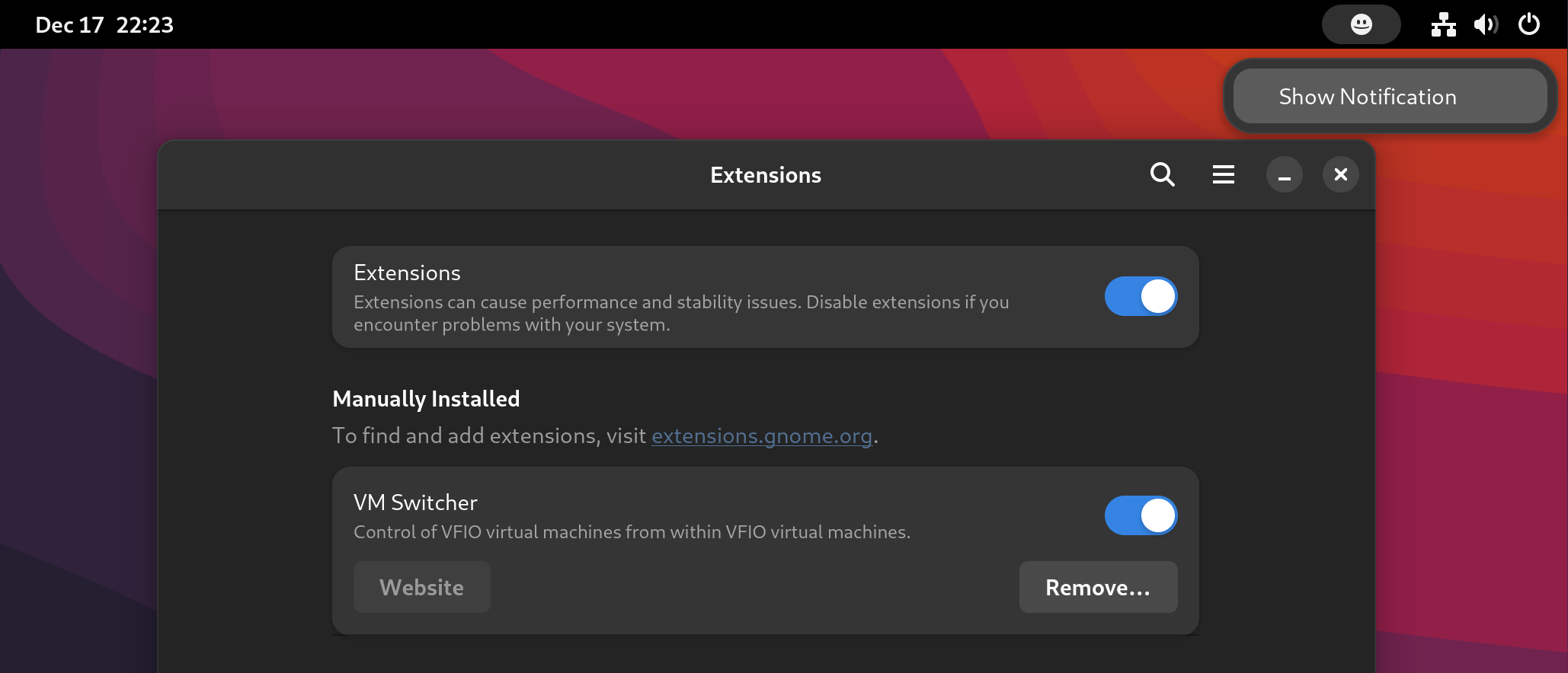 And I’ve also installed the GNOME extension on the VM that runs on boot.