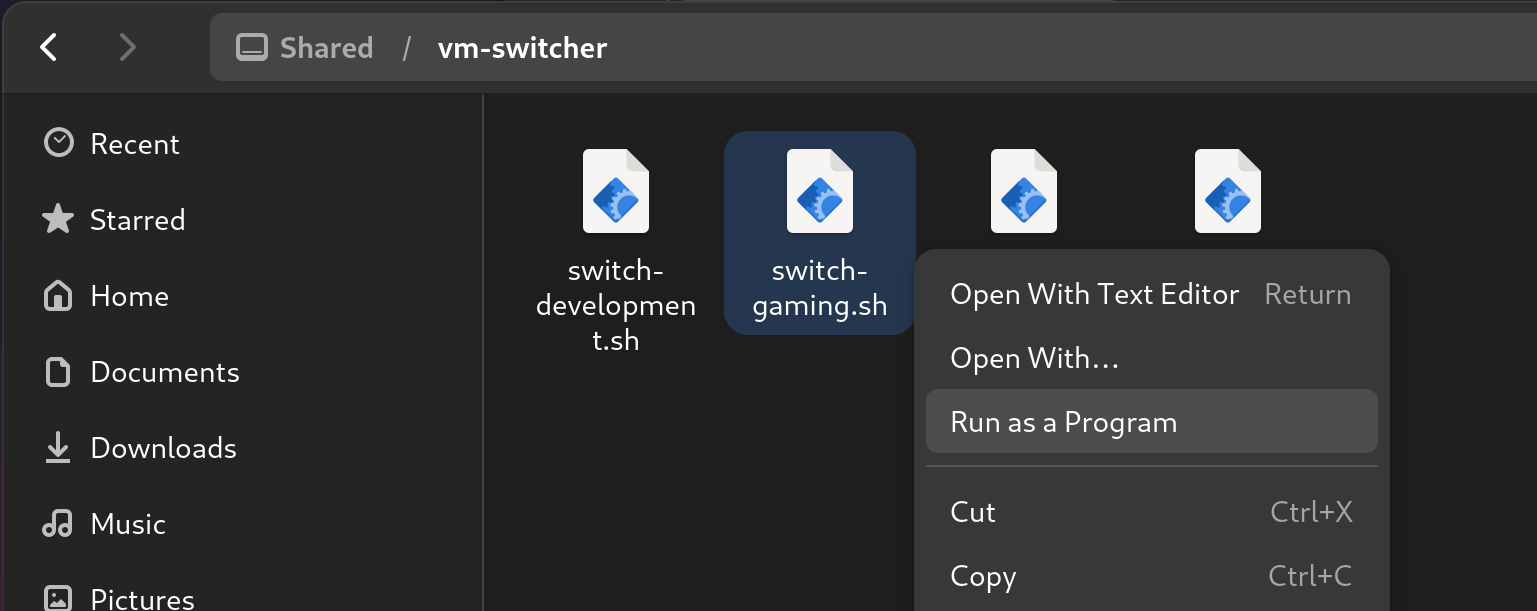 For the first iteration, I installed this on the host, and placed some scripts in a folder which is shared between all of the VM’s. The scripts use curl commands to call the API. To trigger a VM switch (or a shutdown of the host), I could go to a folder, and run one of these scripts.