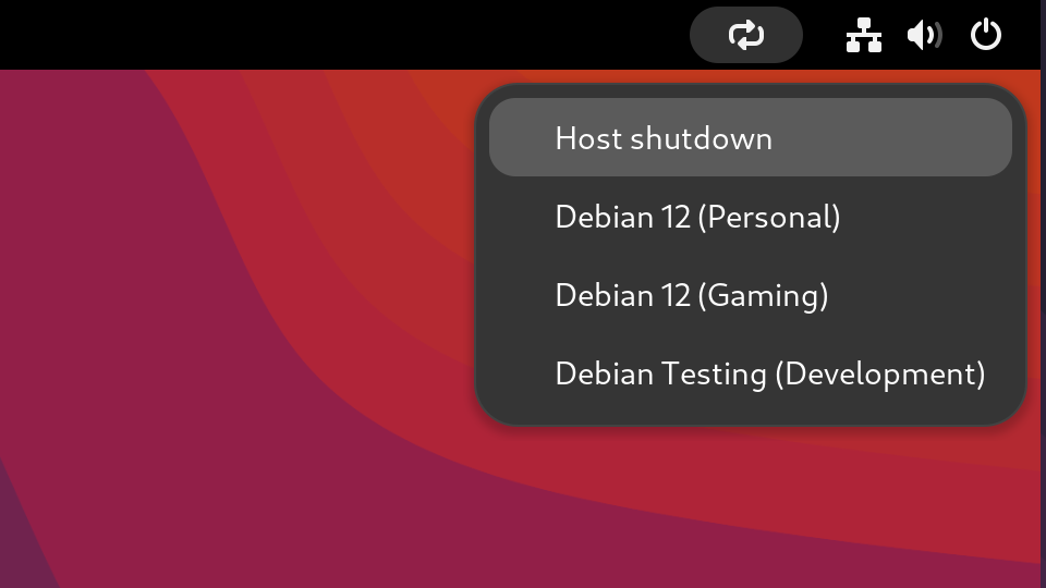 My plan for this was to run an agent on the host, which will accept a request to switch VM’s. It would then shut down the current VM, and start up a different one instead.